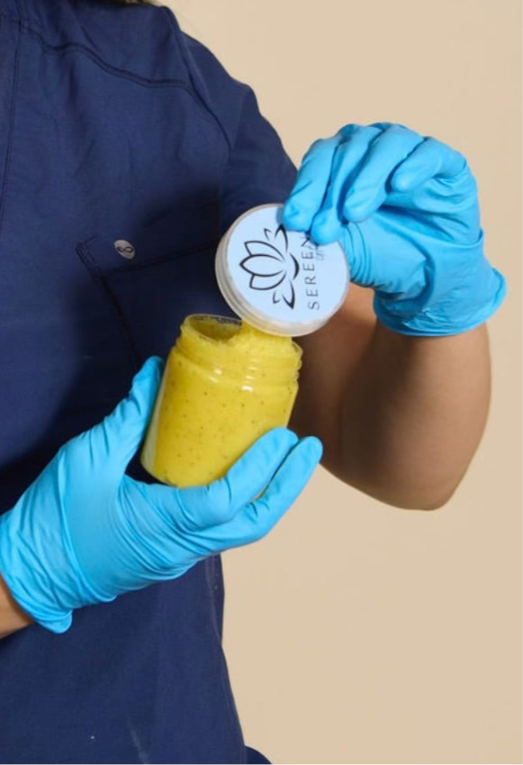Experience the ultimate all-in-one skincare solution! Our hand-crafted Turmeric & Lemon Brightening Scrub is specially designed to brighten and even out skin tone, targeting dark areas like inner thighs, underarms, knees, elbows, and neck.